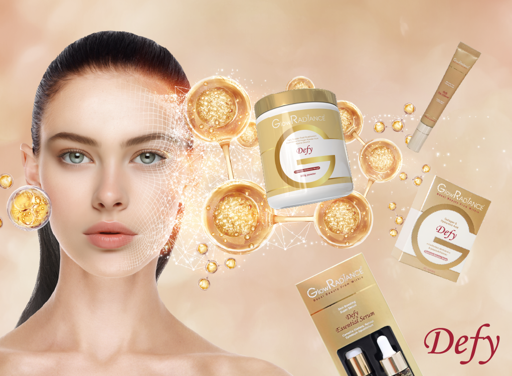 DEFY helps reverse the effects of aging, stress, and environmental damage by replenishing lost collagen and supporting deep skin renewal. With consistent use, it improves skin density and texture, softens fine lines, and enhances your overall glow—leaving your skin smoother, firmer, and more luminous from the inside out.